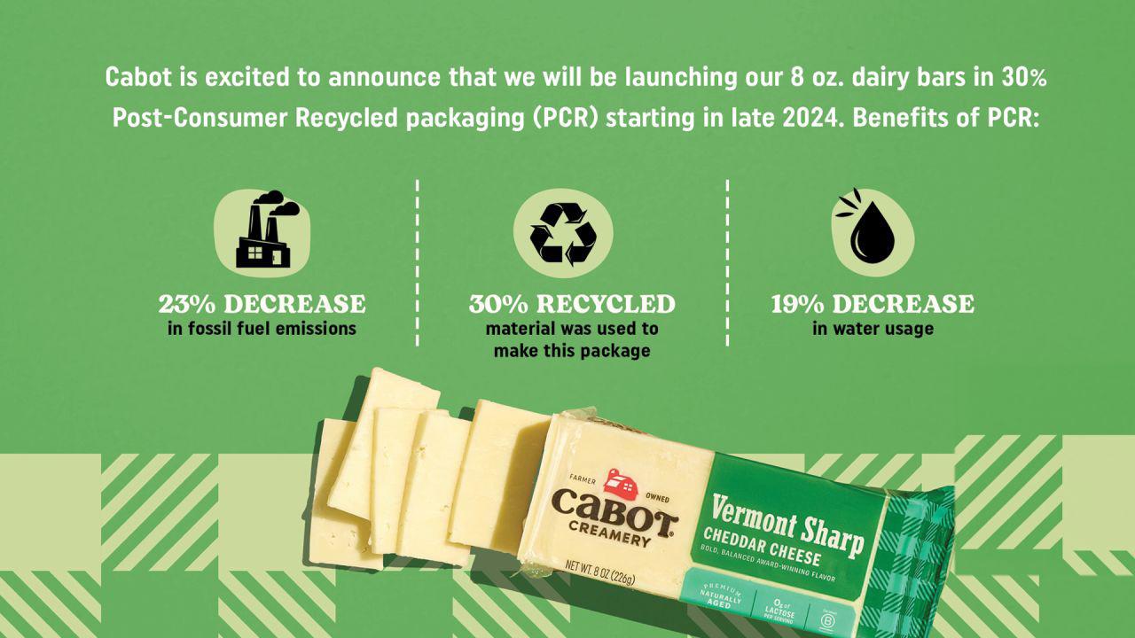 We are thrilled to announce our 8 oz. dairy bars will be packaged using 30% Post-Consumer Recycled (PCR) material starting late 2024. This change is a step forward in our sustainability journey, and the best part is that this packaging requires no additional steps from consumers.