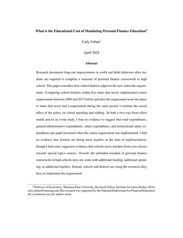 What is the Educational Cost of Mandating Personal Finance Education?