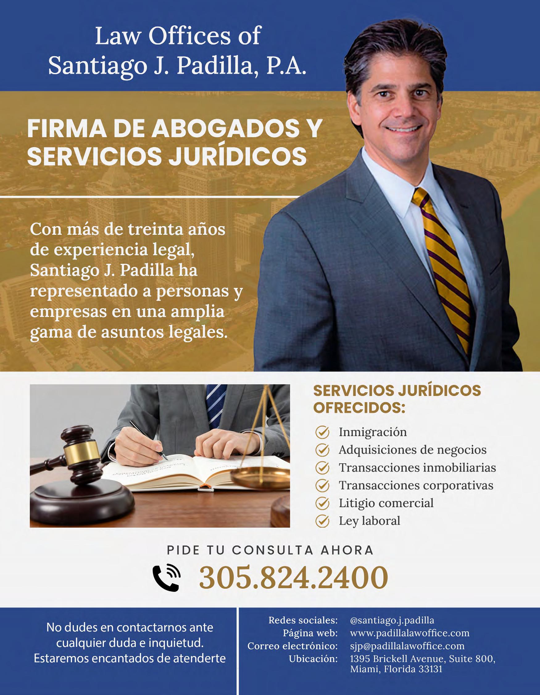 Somos un bufete de abogados internacional de servicio completo con sede principal en Miami. Nuestro equipo de profesionales incluye abogados bilingües y certificados en derecho internacional, litigios, arbitraje e inmigración. Tambien incluye ex fiscales y ex agentes federales, así como especialistas en antilavado de dinero y sanciones, con experiencia incomparable en asuntos penales y regulatorios.