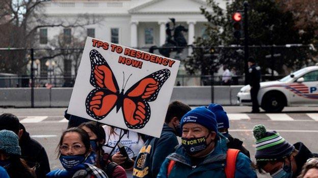 Activists march toward the White House in 2021 to a call for Congress and the Biden administration to pass legislation granting immigrants with Temporary Protected Status a path to citizenship. (Andrew Caballero-Reynolds/AFP via Getty Images).