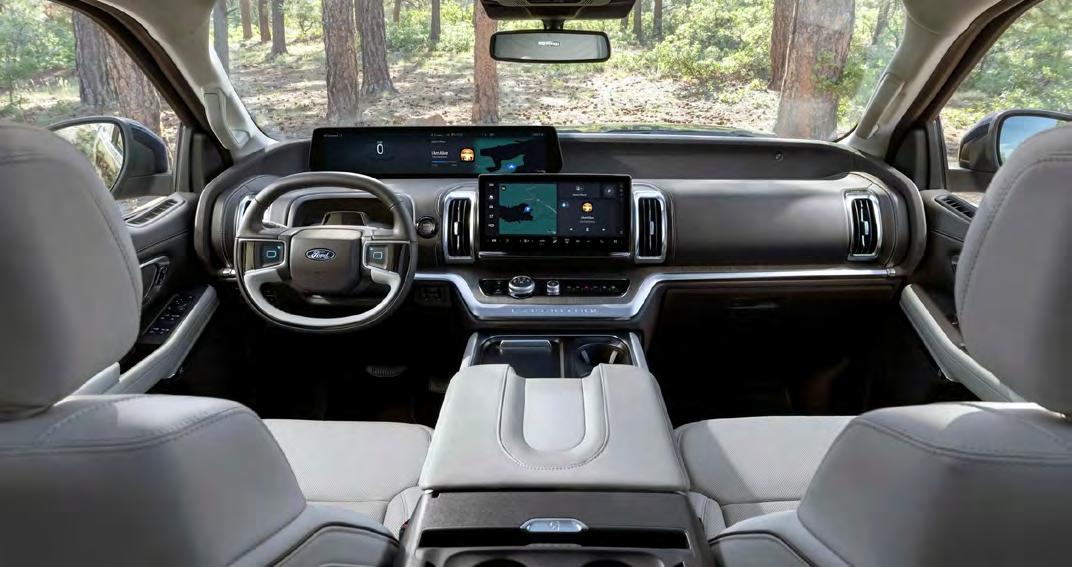 En el interior, la Expedition Tremor mantiene la amplitud característica del modelo, ofreciendo tres filas de asientos diseñadas para maximizar la comodidad durante viajes largos. Los asientos delanteros, tapizados en cuero perforado y con calefacción y ventilación, integran el logotipo Tremor que distingue esta versión. La segunda fila cuenta con sillas tipo capitán con calefacción, mientras que la tercera fila incorpora reclinación eléctrica y reposacabezas plegables, lo que agrega practicidad no solo para los pasajeros, sino también para la gestión del espacio de carga.