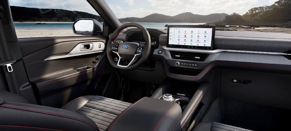 Uno de los avances más importantes es la integración del nuevo sistema Ford Digital Experience, que cuenta con una pantalla táctil de 13.2 pulgadas y compatibilidad con aplicaciones como Google Maps, Spotify y Amazon Music. También se han incorporado puertos USB en las tres filas de asientos y una plataforma de carga inalámbrica para dispositivos móviles. Además, los conductores podrán disfrutar de iluminación ambiental personalizable con siete opciones de color, disponible en los modelos Platinum y ST.