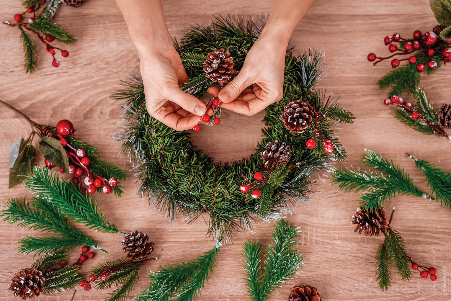 Those new to wreath-making need not worry, as it’s relatively easy to learn the technique. Here are the basics to crafting a wreath, which can then be adorned as desired.