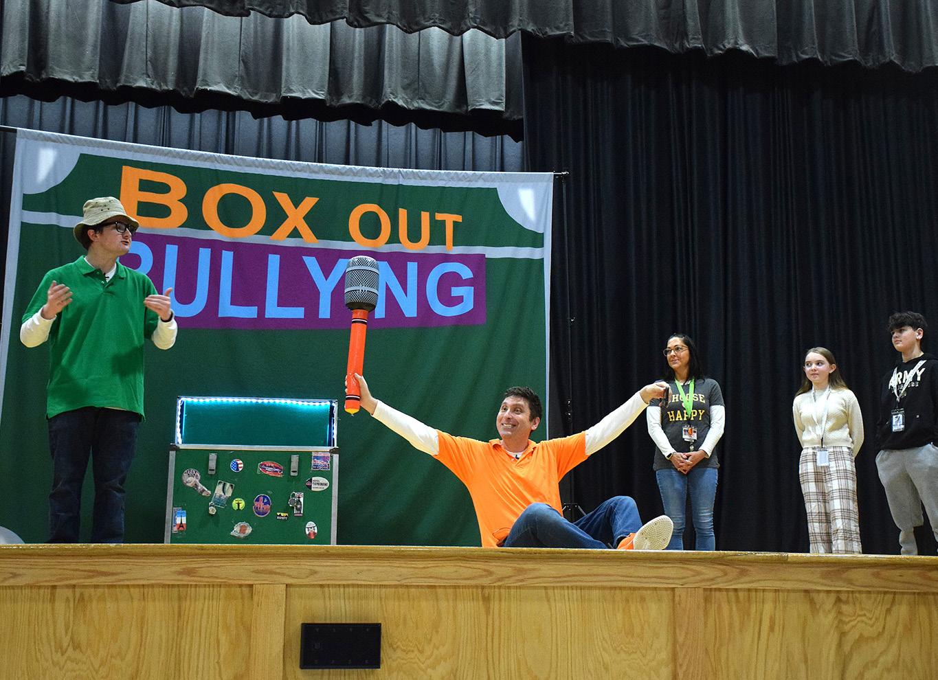 Sixth graders attended a “Box Out Bullying” assembly that included a component on cyberbullying.