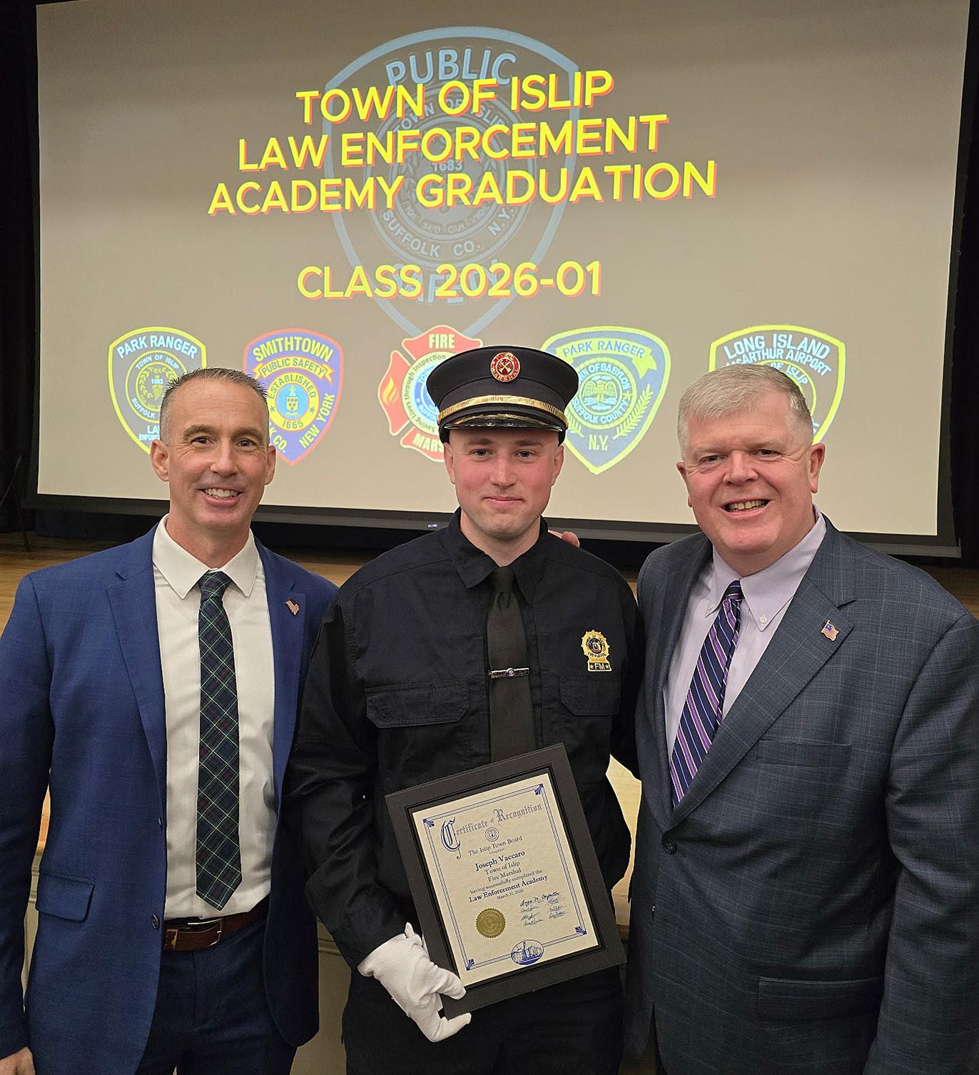 Richard Phipps, and Ernest Michel recognized for their dedication and perseverance throughout the academy. In addition, local resident Joseph Vaccaro of North Babylon graduated from the peace officer program in connection with his role as a Smithtown fire marshal.