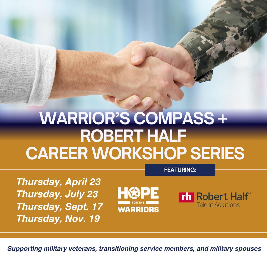 The four-part series begins Thursday, April 23, at 11 a.m. EDT. Led by career coaches from Hope For The Warriors and Robert Half, the onehour interactive workshops are designed for veterans, service members, and