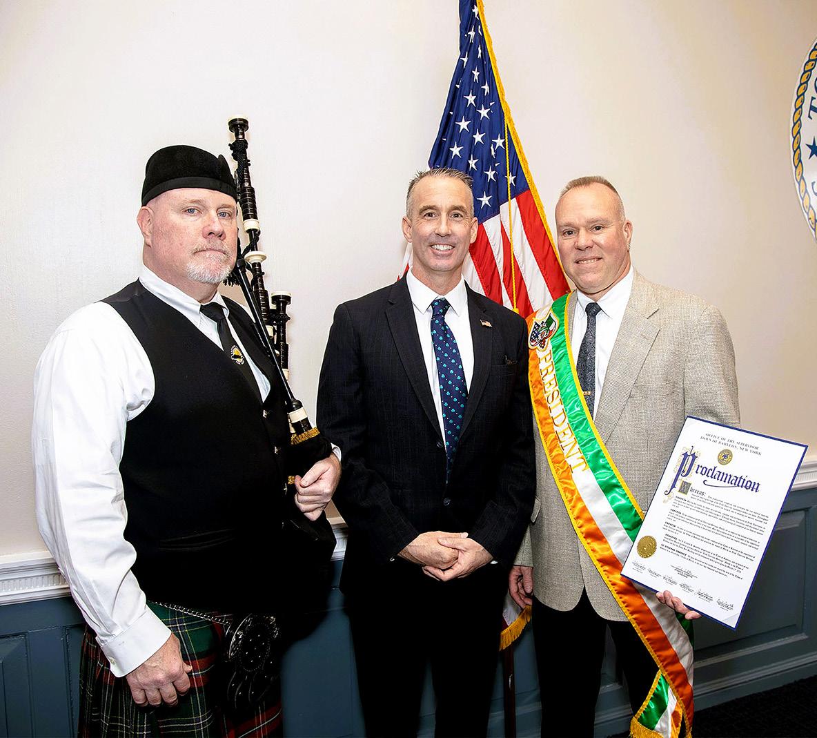 The proclamation was presented by Town Councilman Terrence McSweeney, a member of AOH St. Patrick’s Division 2, to Division President Christopher Bradley in recognition of the many contributions Irish Americans have made to the Town of Babylon and the nation.