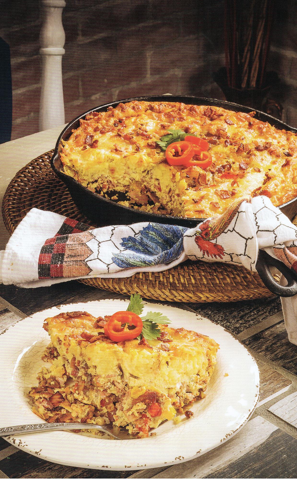 On lazy weekend mornings or when entertaining a crowd, it may be more fitting to serve brunch rather than breakfast or lunch. Brunch enables guests or family members to sleep in a little later. Plus the filling combination of menu items can keep people satisfied until dinner later on in the evening. The recipes for “Farmhouse Skillet” from “Lord Honey Traditional Southern Recipes with a Country Bling Twist” (Pelican Publishing) by Chef Jason Smith, puts together a blend of savory ingredients into an egg casserole that can be a winner on any brunch table.
