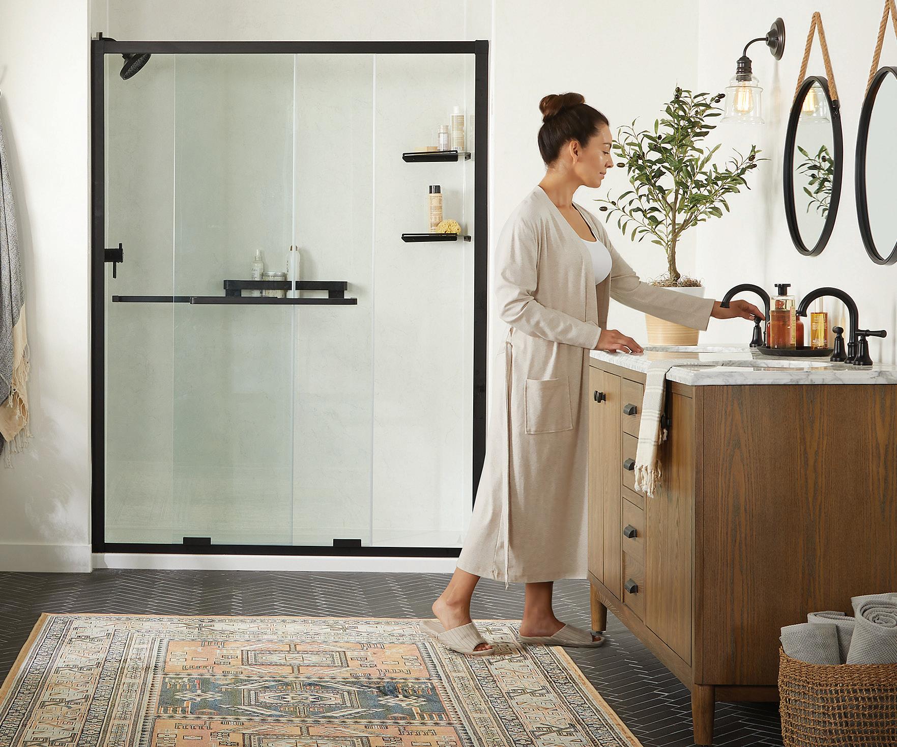 • Bathroom. Bathroom lighting amenities can include a combination of features to fully optimize this space. Most homeowners will want some sort of overhead lighting to shed light on most of the space. Task lighting by the mirror can offer more visibility while shaving or applying makeup. Lighting in a bathing area can keep such spaces safer by improving visibility in a generally slippery area. In bathrooms with spa-like settings, mood lighting paired with features like steam capabilities can enhance the space even further.