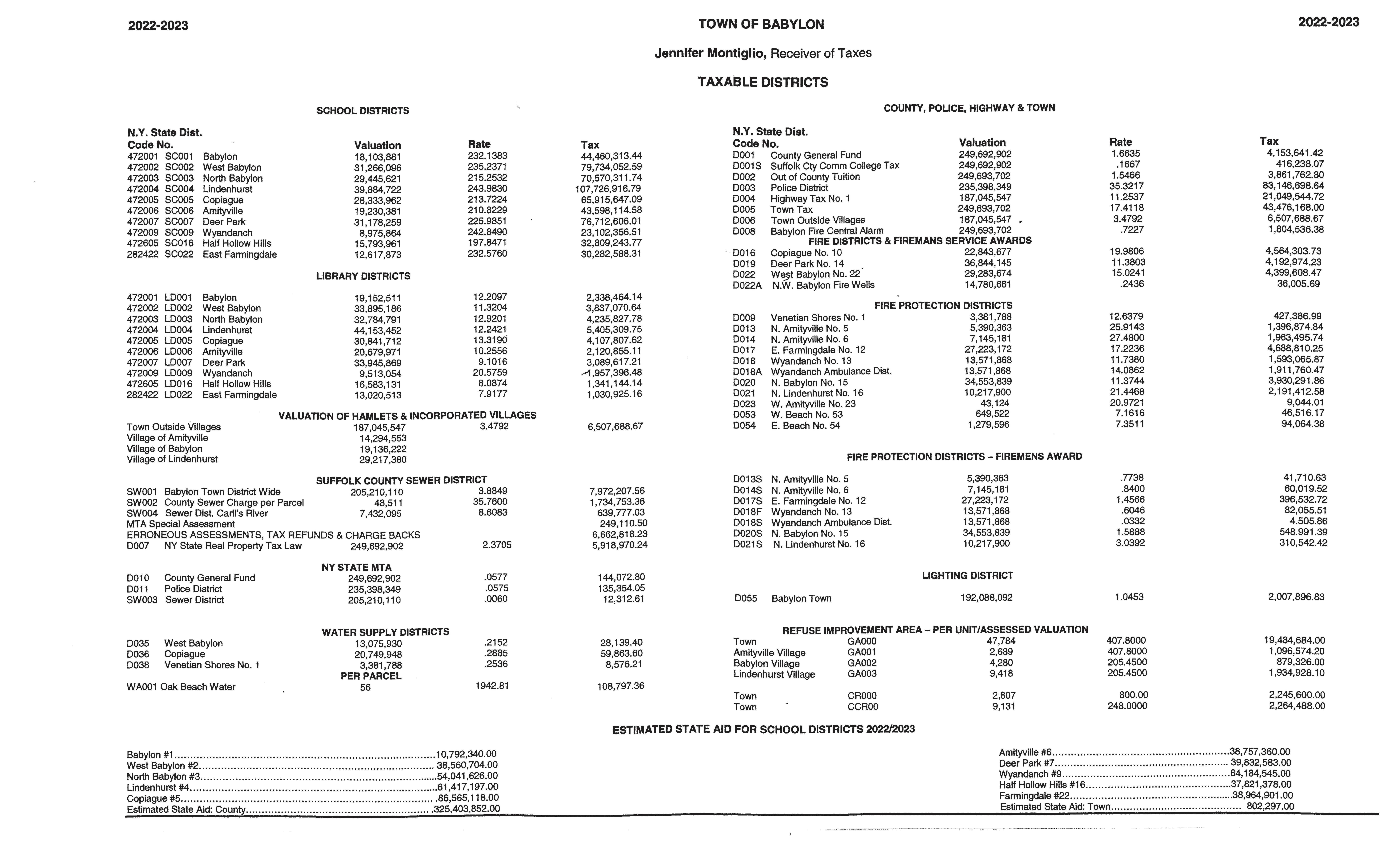 2022-2023 Jennifer Montigio, Receiver of Taxes TAXABLE DISTRICTS