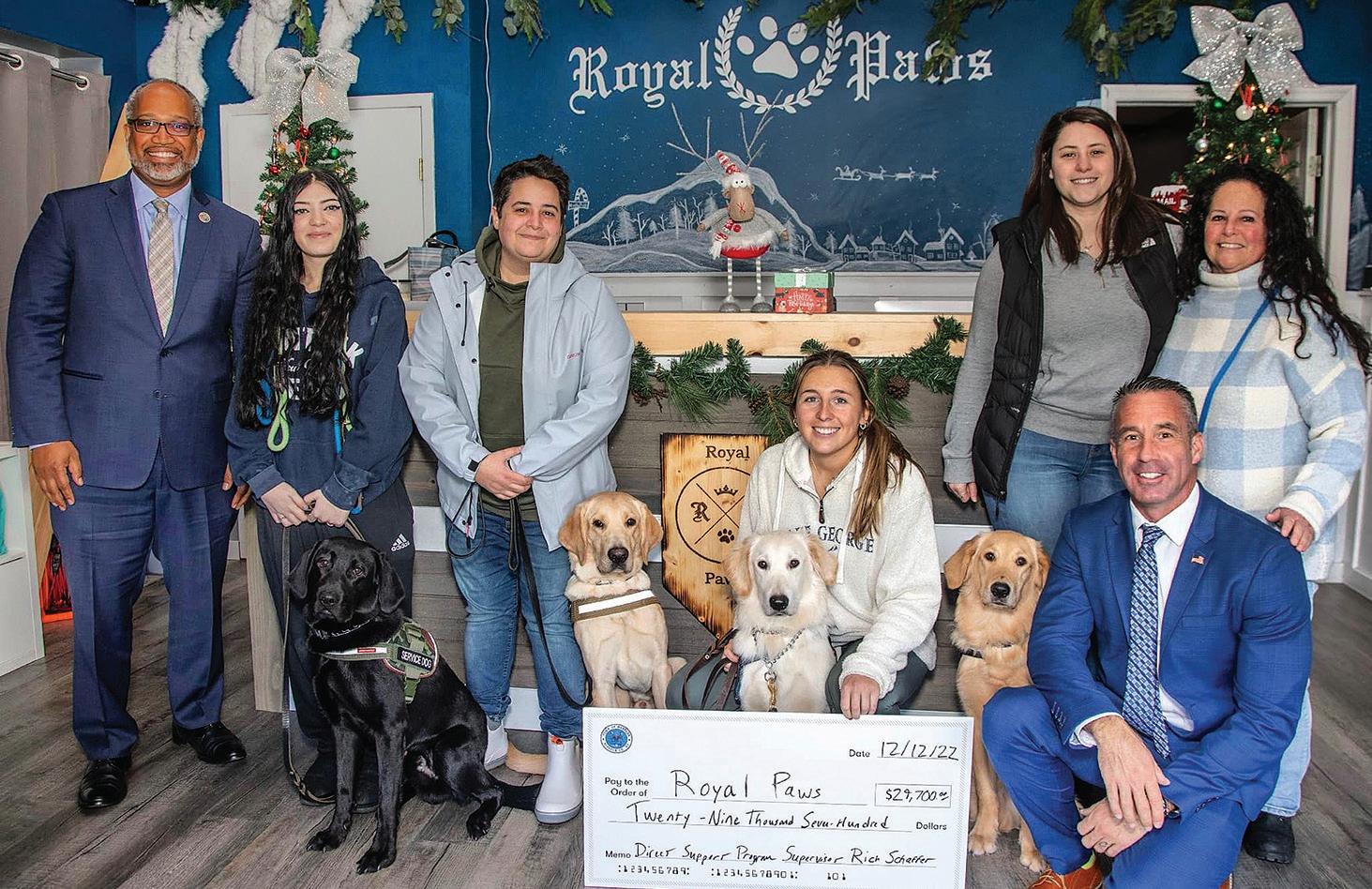On Monday, December 12th, Councilmen DuWayne Gregory and Terence McSweeney “paw-sented” a Direct Support Program award to Royal Paws in Babylon Village. Royal Paws provides dog boarding services and training while also having dog treats and collars available for sale. Coowners Cindy and Taylor