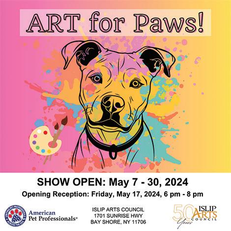 American Pet Professionals and the Islip Arts Council are joining together to host the first ever ‘Art for Paws’ exhibit this May 7 - 30, 2024. Showcasing the incredibly talented pet artist members of both organizations featuring artwork of our beloved four-legged family members. The exhibit will feature artists from around Long Island, in various formats of art.