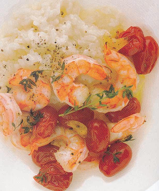 Afterthe lazy days of summer, fall often arrives with packed schedules and everyone getting back on track, whether for work or school. Busy families may not have much time to spend in the kitchen these days, but they don’t need to devote hours to cooking. Even quick meals can serve up significant flavor. In the time it takes to boil rice, this recipe for “Creamy Rice With Roasted Shrimp and Tomatoes,” courtesy of “Real Simple Dinner Tonight: Done” (Time Home Entertainment) from the editors of Real Simple, can be put on the table. Arborio rice makes this dish creamy, but if it’s unavailable, long-grain rice also can be used — just follow the package directions for cooking.
