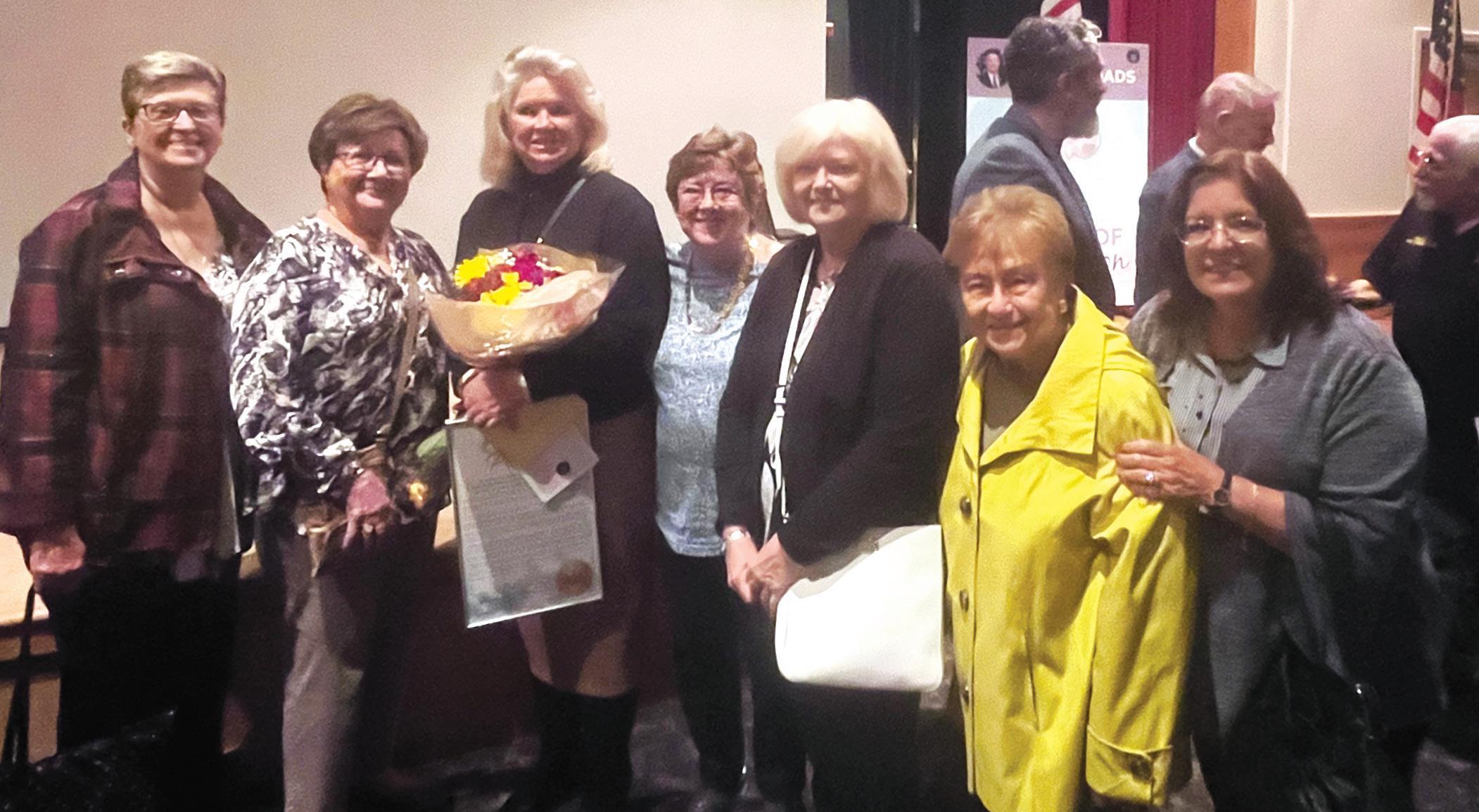 On Thursday, 9/26, Sen. Steve Rhoades hosted a “Women of Distinction 2024” Ceremony at the Plainview/Old Bethpage Library honoring 19 recipients, including Women’s Club of Farmingdale (WCF) Past President and long-standing member Rosemary Trudden. L-R: Anna Ievolo, Maria Ortolani, Rosemary Trudden, Edie Allen, Barbara Hoerner, Dolores Cianciabella, Judith Vazquez