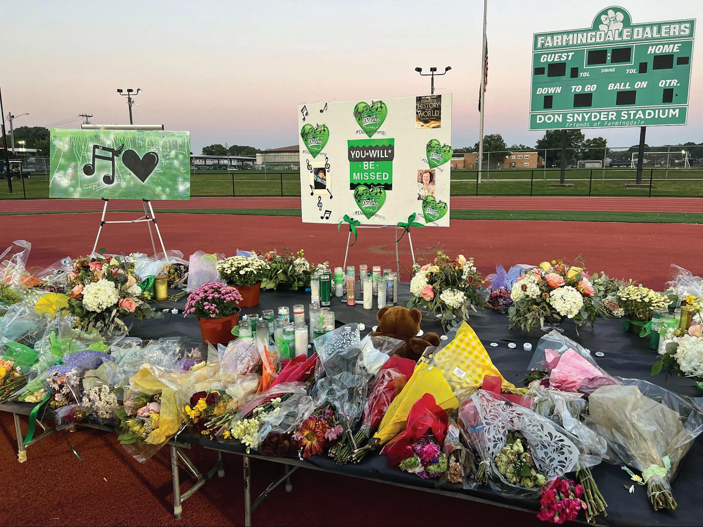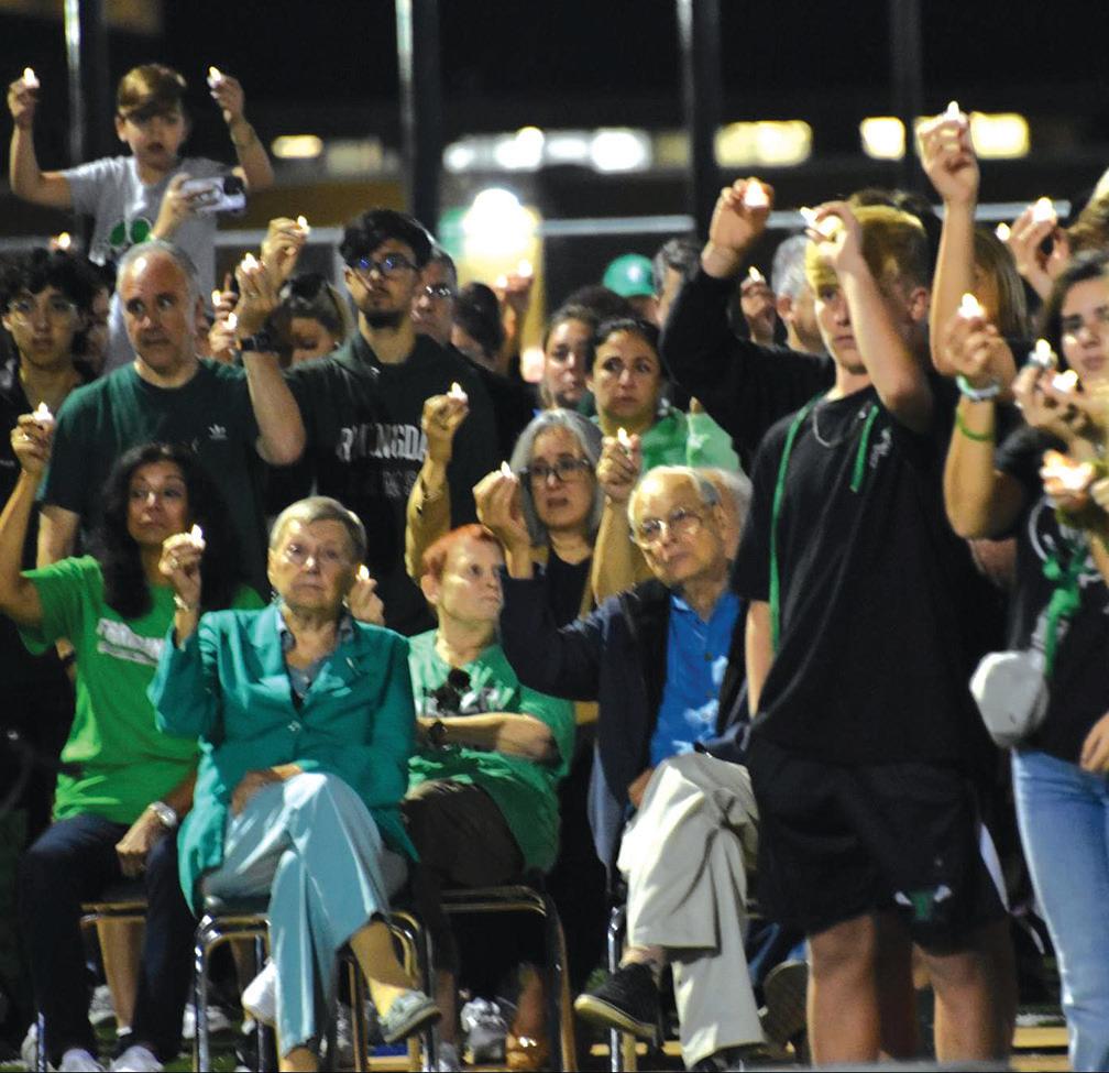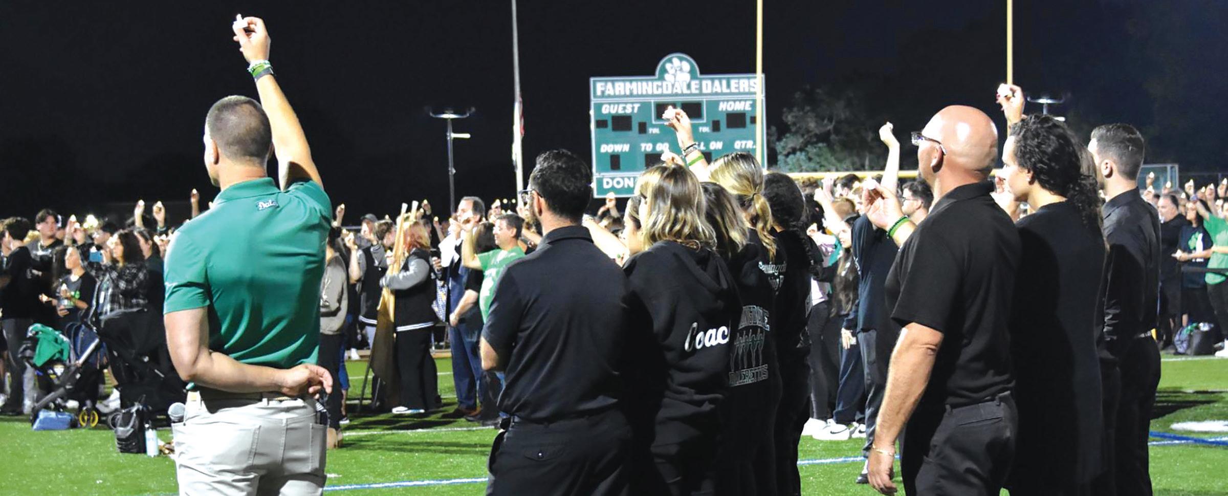 On the evening of October 3rd, thousands gathered at Farmingdale High School’s stadium field to celebrate the lives of two remarkable women, Gina Pelletieri and Bea Ferrari. The outpouring of love and support from the community was a true testament to Ms. P and Bea’s impact on the people around them. Pictured: The community holds up their candles during a vigil honoring the lives of Gina Pelletiere and Bea Ferrari. Photo courtesy of the Farmingdale School District