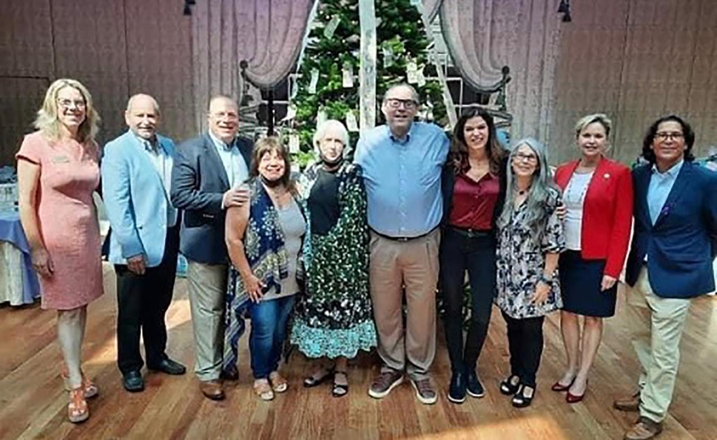 LAST YEAR’S FUNDRAISER FOR GABRIEL’S GIVING TREE - Last year’s fundraiser for Gabriel’s Giving Tree enabled the nonprofit to help many families with funeral expenses. Here, attendees stand in front of the Angel Tree, which has ornaments with the faces and names of those lost to the opioid epidemic. Photo courtesy of Gabriel’s Giving Tree