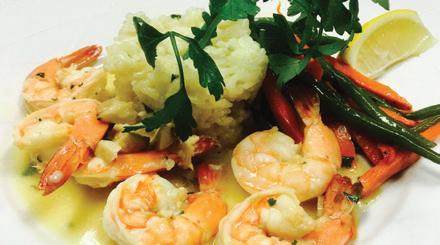 Scampi Con Rico: Garlic, Butter, White Wine And Lemon Served Over Rice