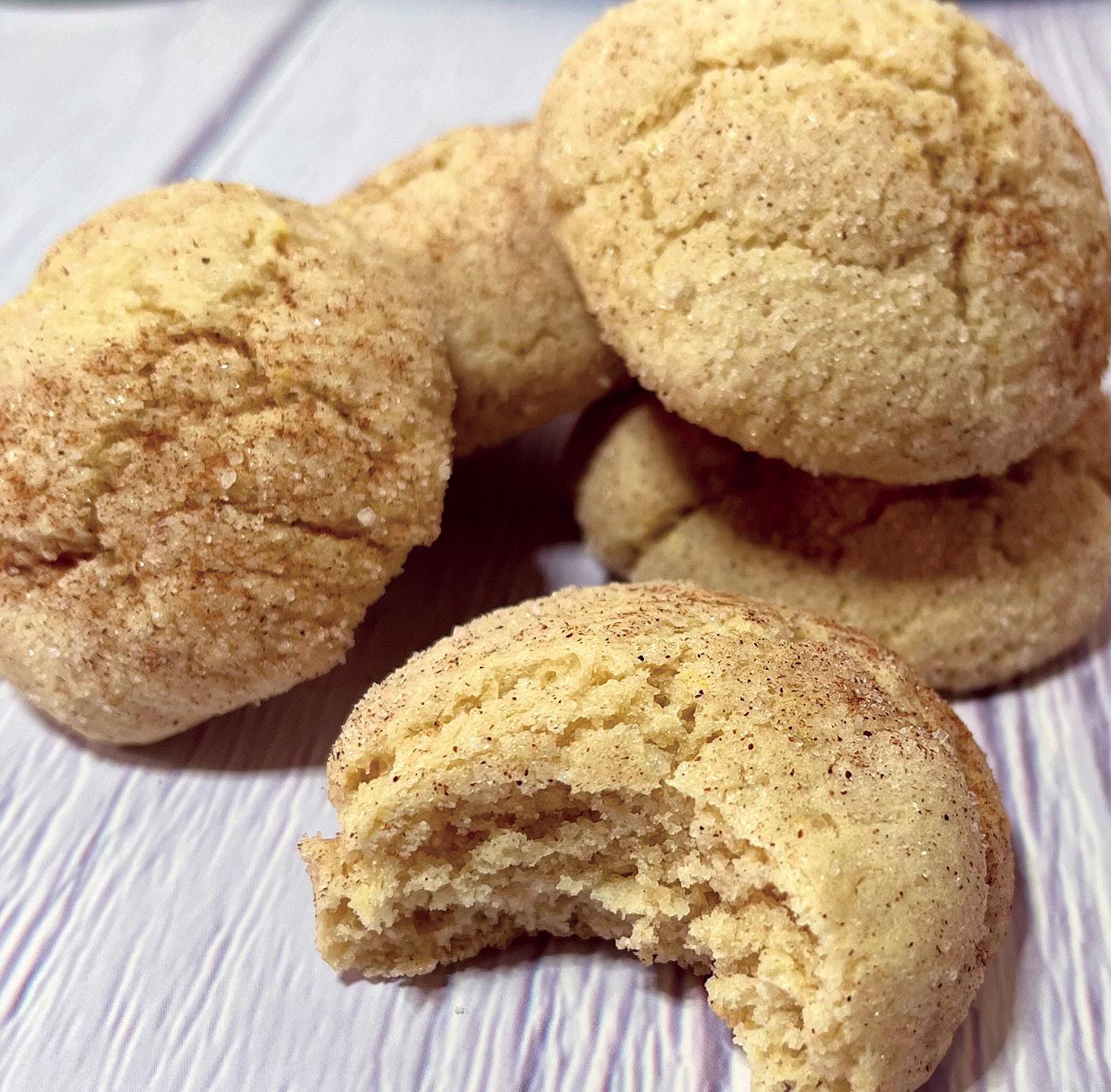 5. In a shallow bowl, combine sugar and cinnamon. Scoop small balls of the cookie dough (about an inch in diameter) and roll in the cinnamon and sugar mixture. Place each ball 2 inches apart on the cookie sheets. Repeat until all dough is used. The cookies will puff and enlarge while cooking.