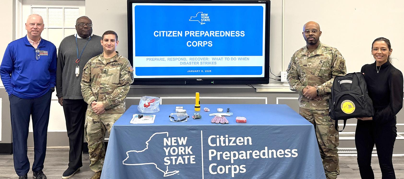 EMERGENCY PREPAREDNESS TRAINING - Suffolk County Legislator Tom Donnelly (D-Deer Park) and New York State Senator Monica R. Martinez (D-Brentwood) recently hosted a New York Citizen Preparedness Corps Training Program in Deer Park to help residents learn how to prepare for and respond to emergencies. From left, Suffolk County Legislator Tom Donnelly, Paul Sanders Soodoo of the Deer Park Community Cultural Alliance, Army Sergeant First Class Christian Ruiz Marquez, Air Force Technical Sergeant Alex Compere and New York State Senator Monica R. Martinez at the New York Citizen Preparedness Corps Training Program in Deer Park.