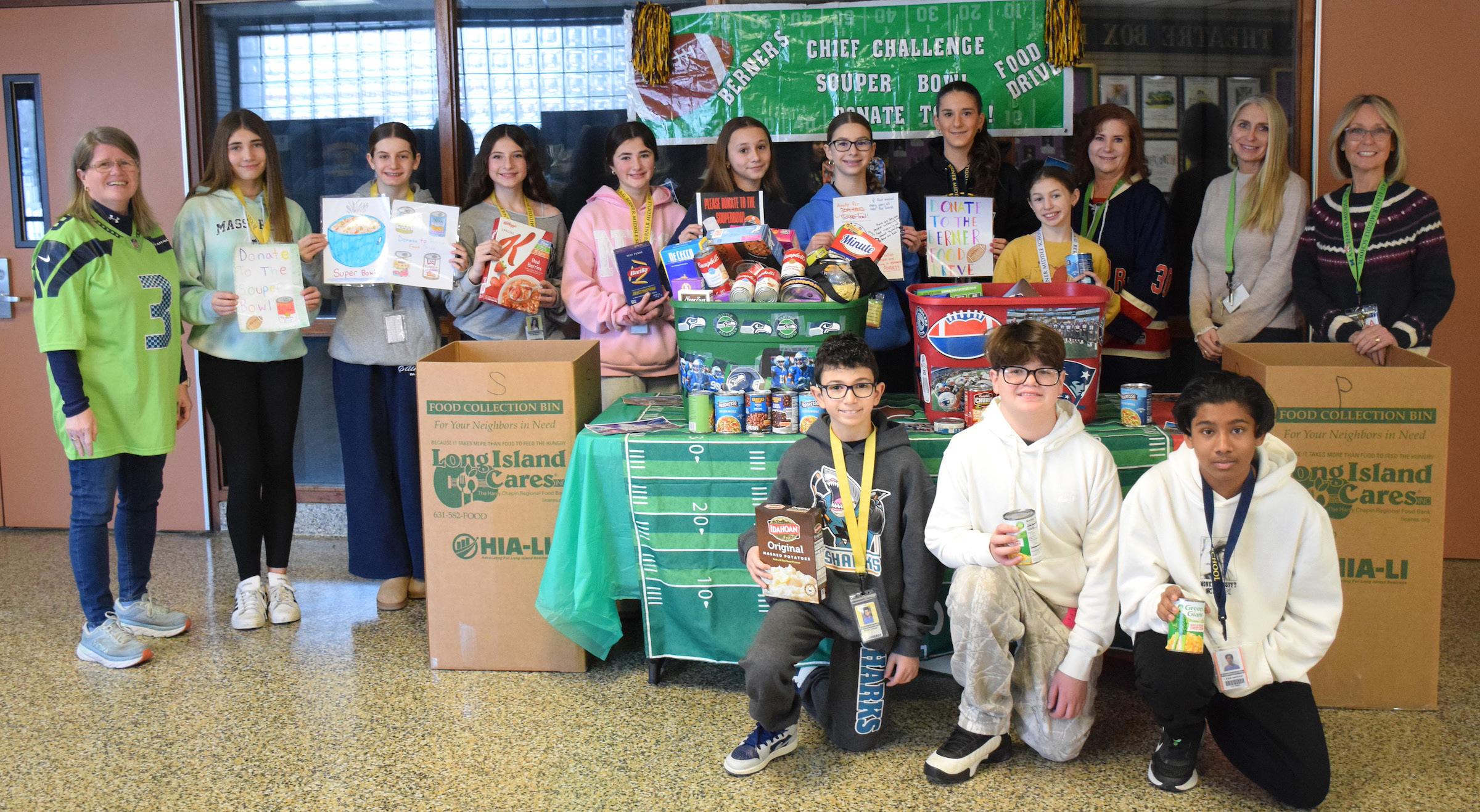 As the annual Souper Bowl food drive came to an end on Feb. 6 at Berner Middle School in the Massapequa School District, the preferred team was obvious. The boxes for the Seattle Seahawks were filled significantly higher with donations of nonperishable goods than the boxes for the New England Patriots.