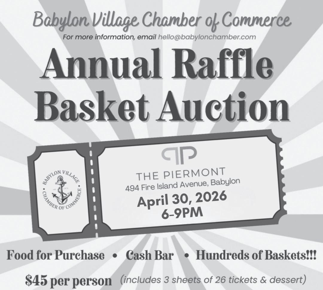 NOTICE IS HEREBY GIVEN, that a public hearing will be held by the Board of Trustees of Babylon Public Library, Town of Babylon, County of Suffolk, State of New York will be held at the Babylon Public Library, 24 S. Carll Avenue, Babylon, New York in said District on, March 31, 2026, at 6:30 P.M., for the purpose of discussing expenditures contained in the proposed budget for the fiscal year 2026–2027. Copies of the budget document will be made available to District residents commencing March 24, 2026, upon request, between the hours of 9:00 a.m. to 4:00 p.m. prevailing time, in the office of the District Clerk located in the Superintendent’s Office of the Administration Building.