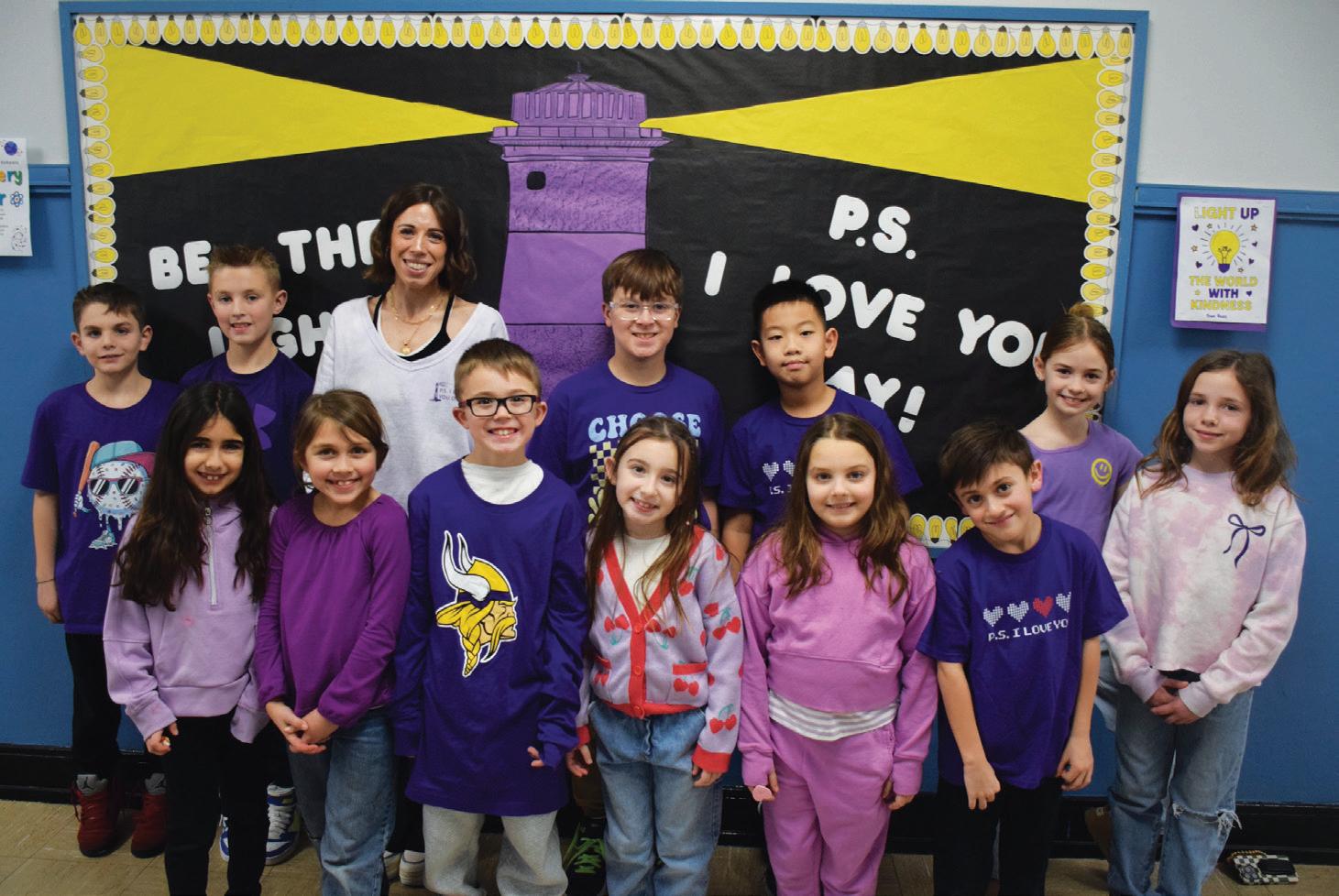 positive messages, chalked on the sidewalk by the PTA. Throughout the day, they enjoyed the hallways decorated by the Best Buddies and Mindfulness clubs. There were purple hearts, representing the color and image that symbolizes P.S. I Love You Day, and “Light up the world with kindness” posters, as this year’s theme was “Be the Light.”