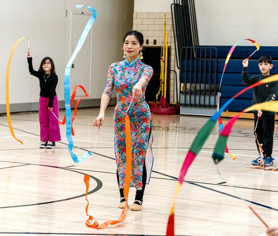 • Learned the traditional ribbon dance, twirling colorful silk ribbons through the air