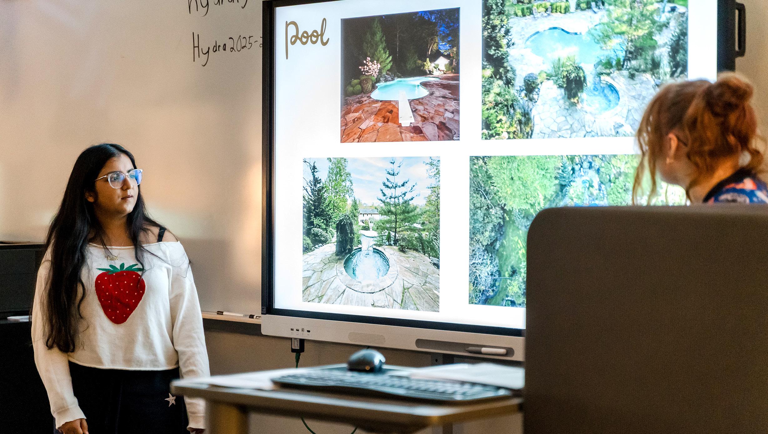 Students in Bethpage High School’s Real Estate 101 class present housing listings to their classmates. Photo courtesy of Bethpage Union Free School District