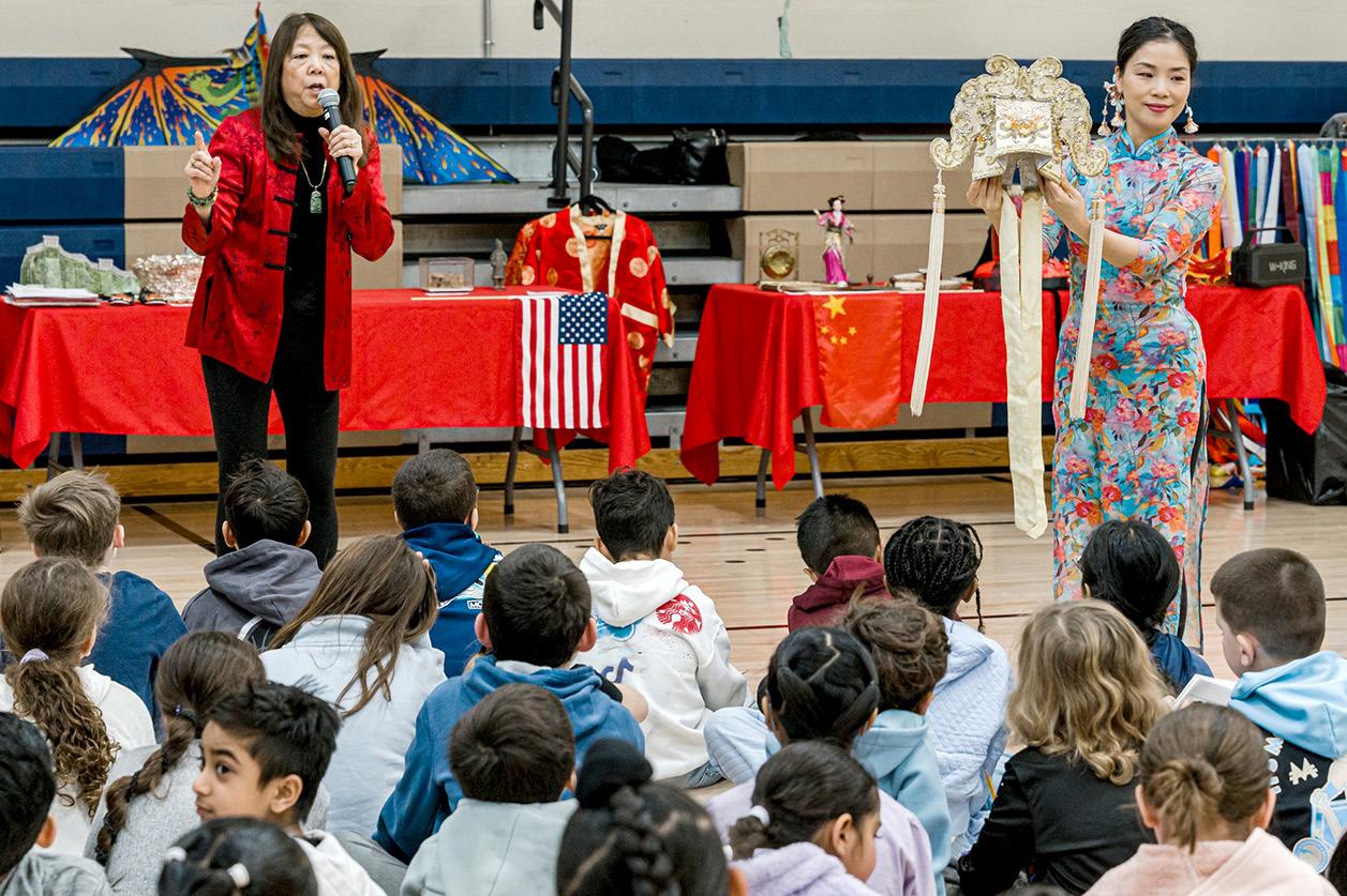 a schoolwide assembly where students explored China’s vast geography, learned about the Great Wall and discovered the many inventions that originated in China – from paper to the compass.