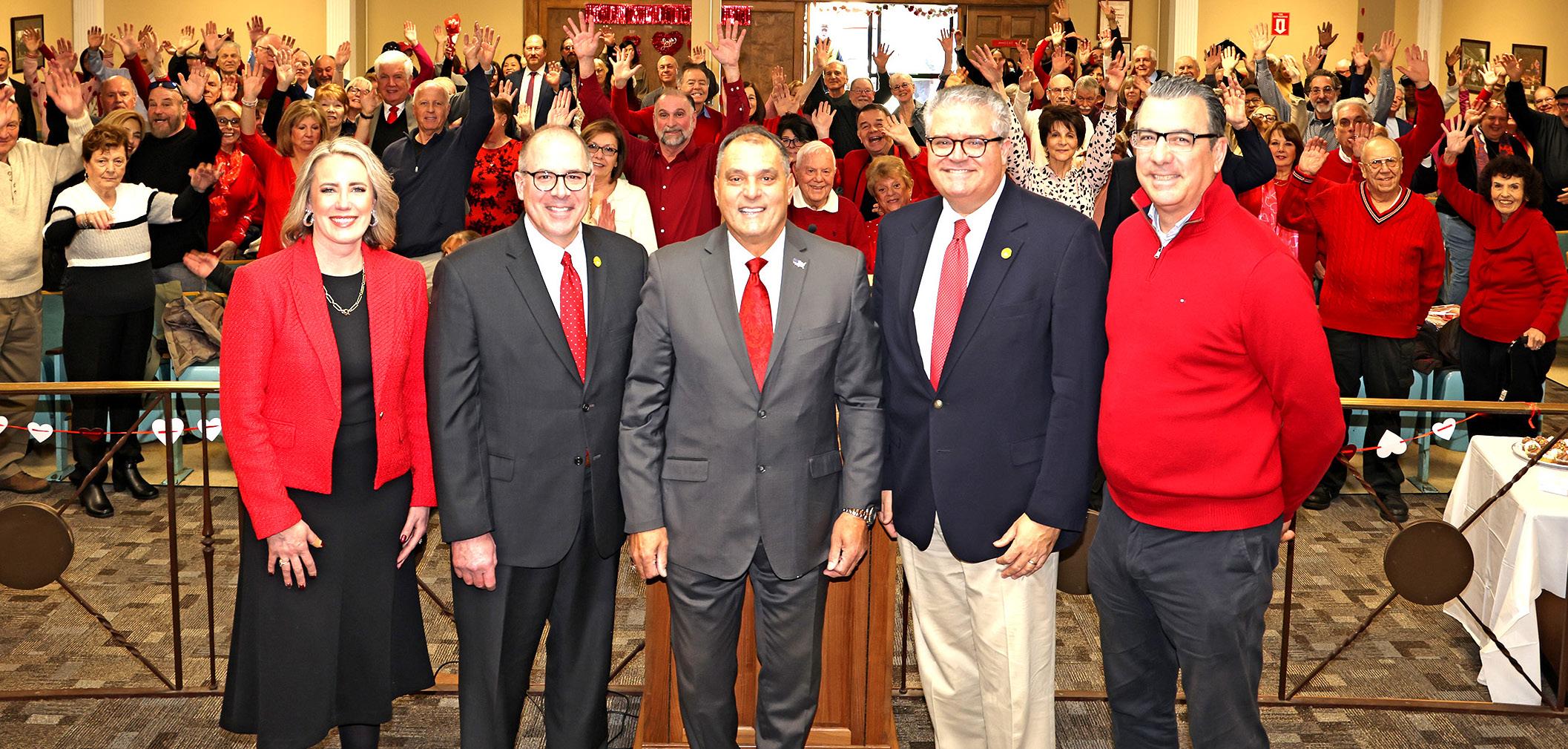Councilwoman Laura Maier, Town Clerk Rich LaMarca, Supervisor Joe Saladino, Councilman Andrew Monteleone and Tax Receiver Jeff Pravato celebrate with over 100 couples at a Valentine’s Day Vow Renewal ceremony at Town Hall.