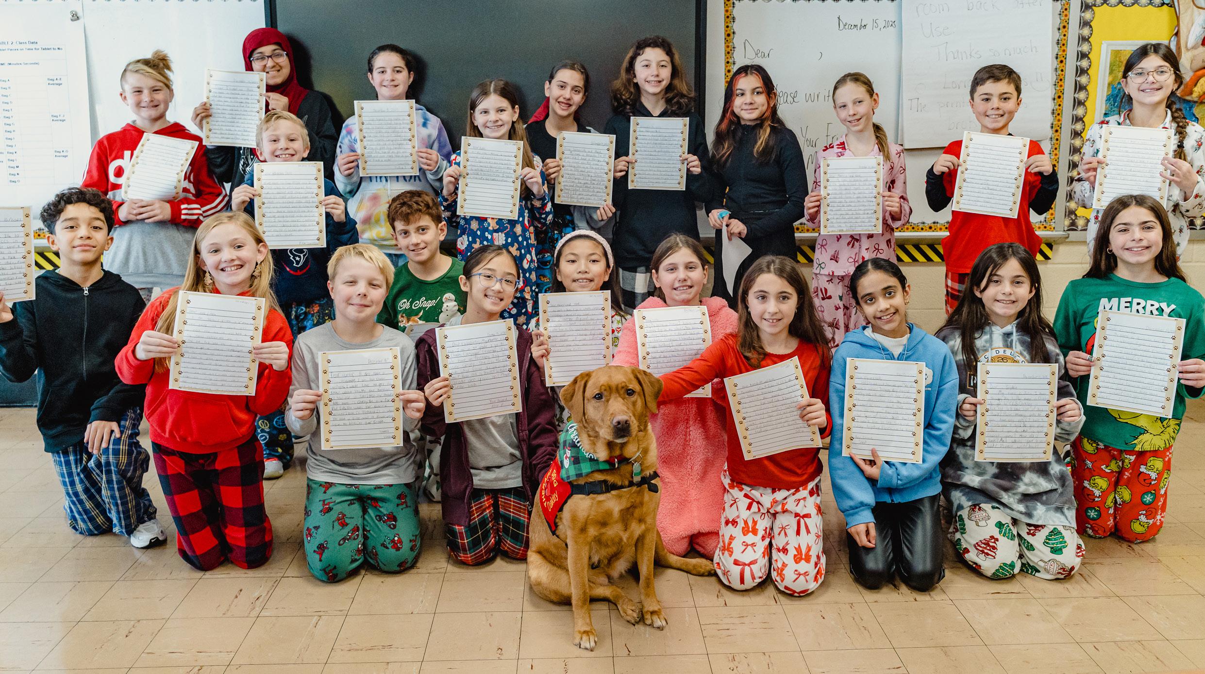 The initiative has been so popular that third, fourth and fifth grade students volunteer to come in during recess to write letters to their pen pals – and spend a little extra time with Oakley while they’re at it.