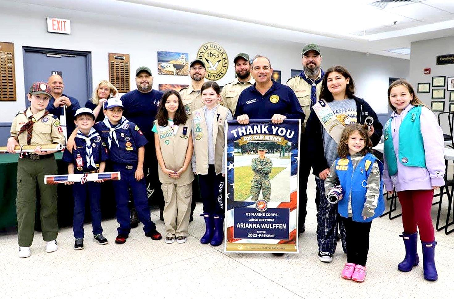 Councilman Steve Labriola distributes banners with local scouting groups.