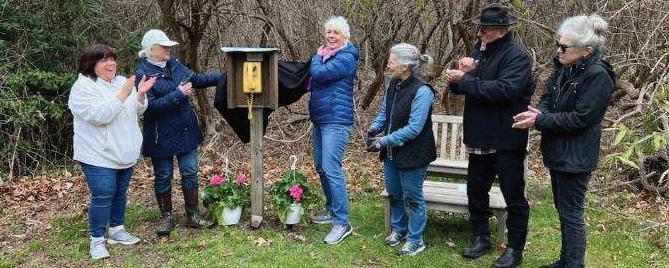 THE WIND PHONE - The Wind Phone was unveiled on April 21 by members of Gabriel’s Giving Tree. From left are Lori Carbonaro, Paulette Phillippe, Carole Trottere, Claudia Friszell, Charlie Limbach who constructed the phone, and his wife Grace Limbach. Photo courtesy of Gabriel’s Giving Tree