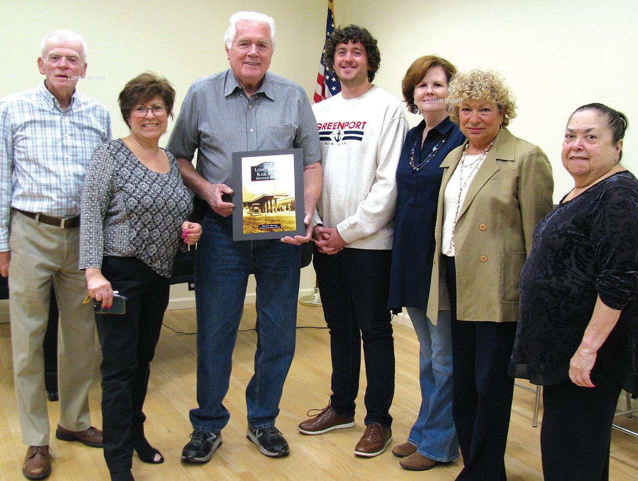 HISTORICAL SOCIETY OF ISLIP HAMLET HOSTS AUTHOR DAVID MORRISON - On Wednesday, May 24th, the Historical Society of Islip Hamlet hosted author David Morrison as he recounted stories about the railroad that shaped Long Island history for over 150 years. Society board members with Mr. Morrison are Gene Murphy, Madeline Hanewinckel, Matt Clareen, Jean Marie Reiszl, Chris Vanasco, and Elvira Lettieri. To find info on how to become a member or on our upcoming programs and July Garden Walk, www.isliphamlethistory.org, 631-559-2915.