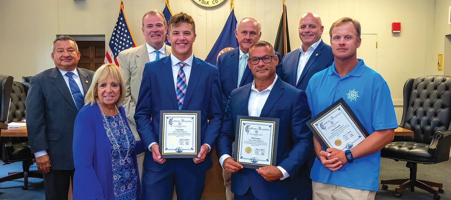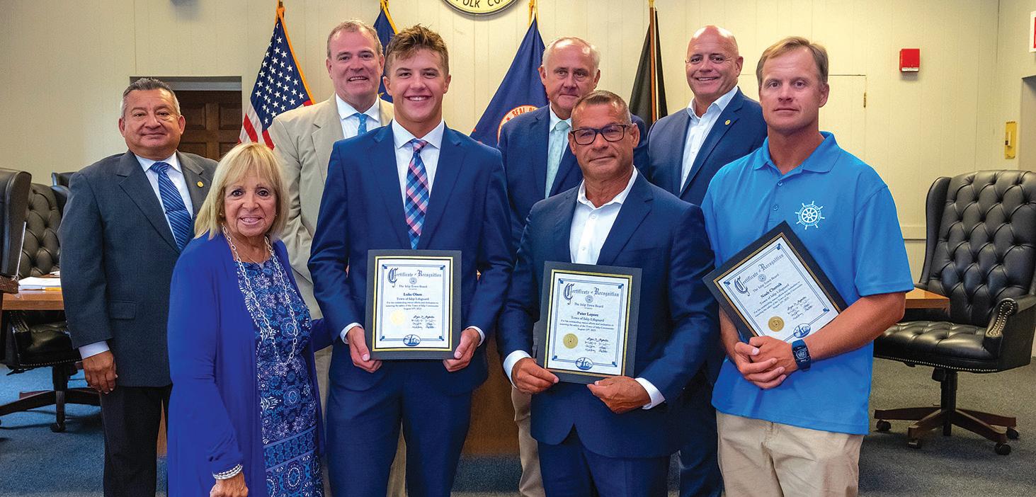 Islip Town Supervisor, Angie Carpenter and members of the Town Board were proud to recognize a group of Town of Islip Ocean Lifeguards who facilitated in the rescue of three beachgoers while on duty at Kismet’s ocean-side beach.