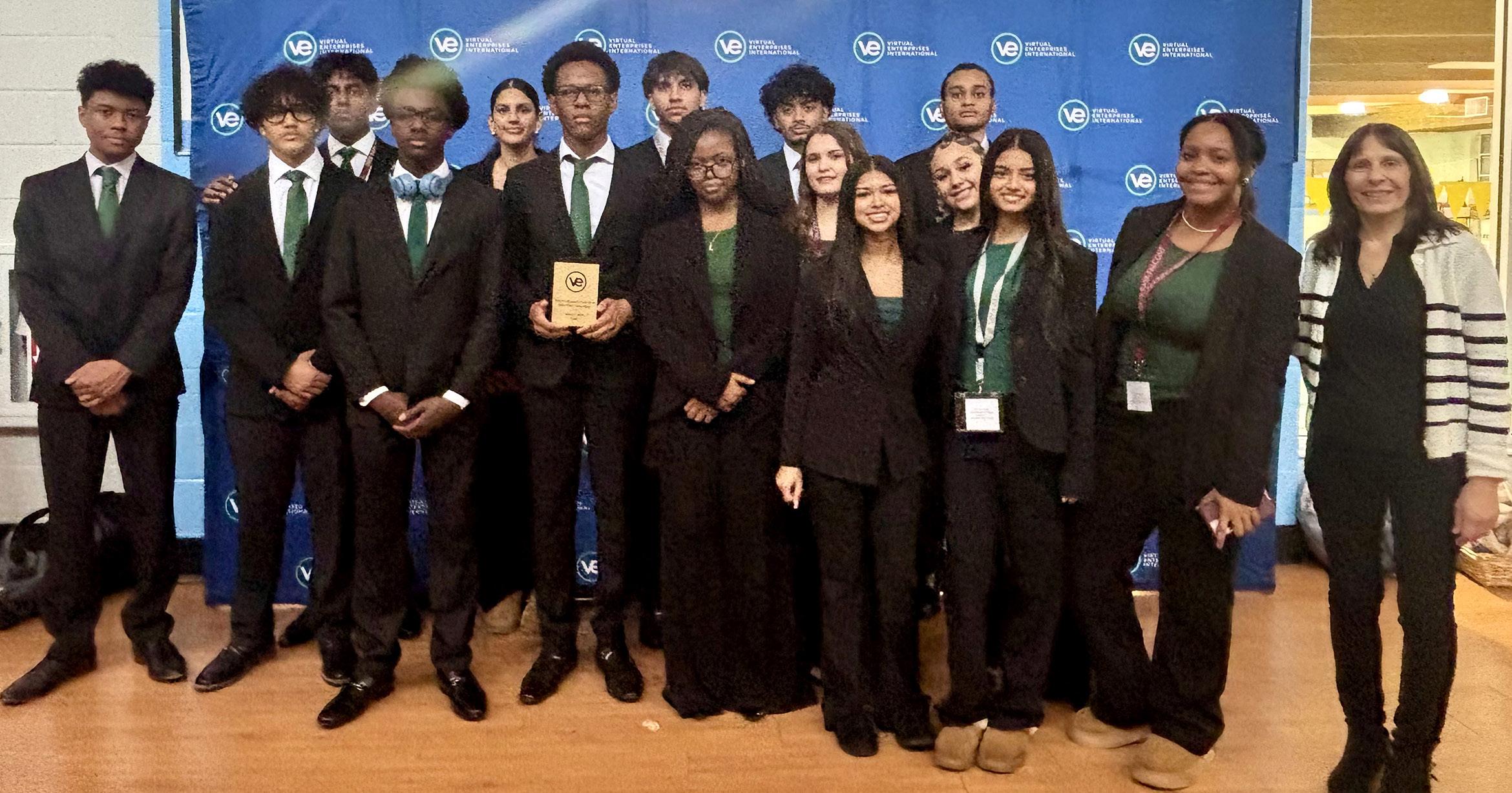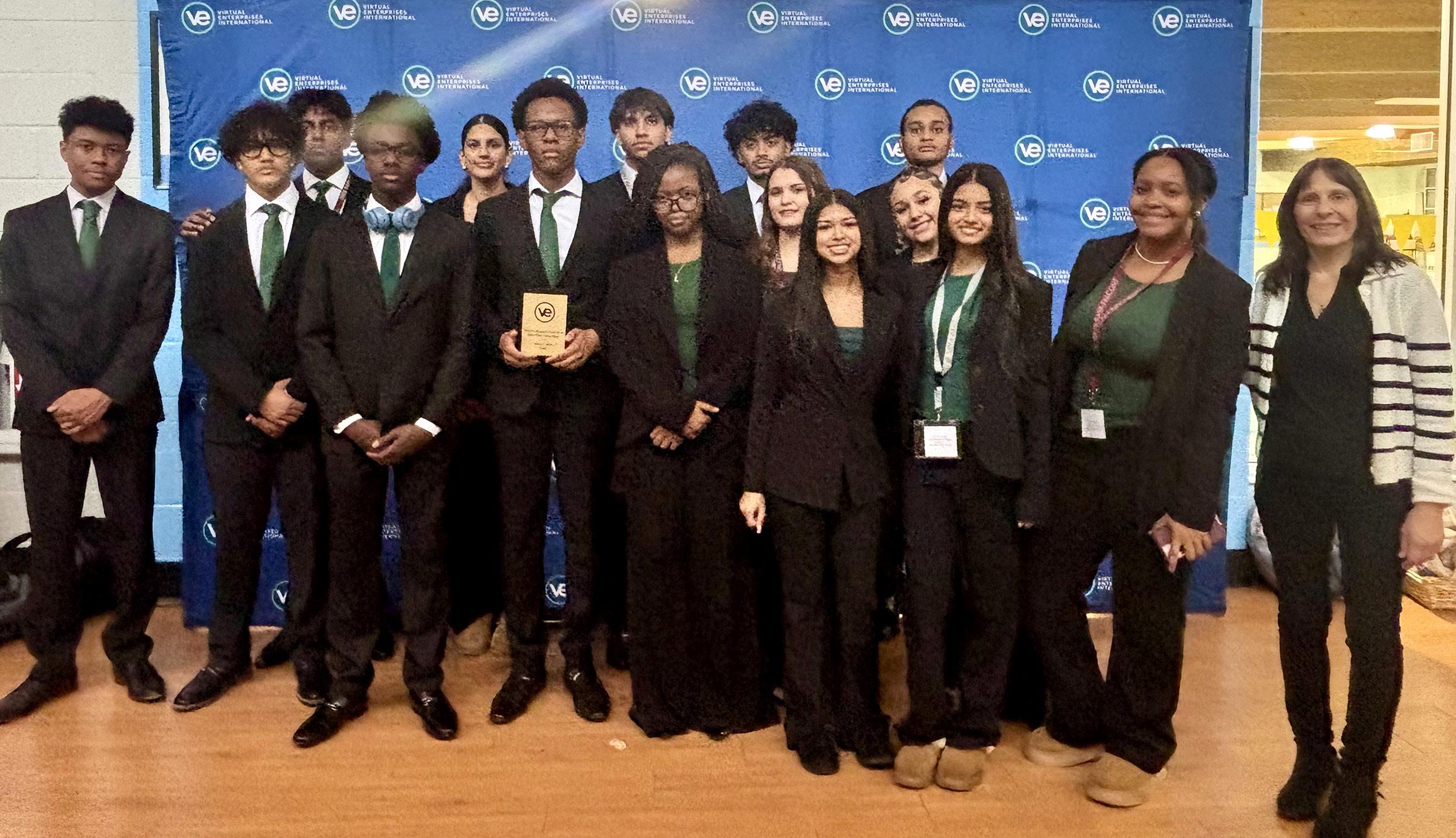 Deer Park High School’s Virtual Enterprise students proudly represented the school at the recent New York State Regional Business Plan Competition and Trade Show from Jan. 14-15, earning a Gold award for Best Sales Pitch. Dressed professionally in coordinated black and green, reflecting their company TechNova’s brand colors, students confidently drew customers to their booth and showcased their products using studentdesigned prototypes.
