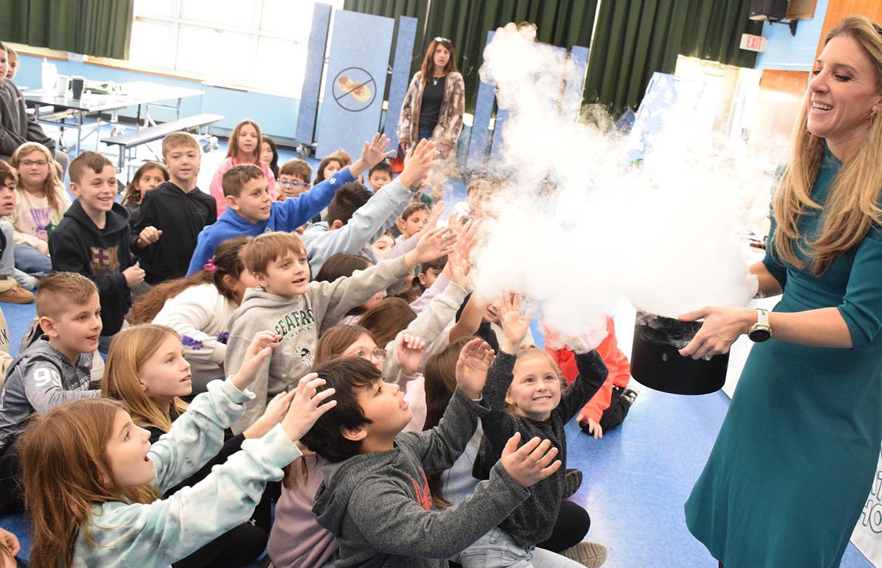 Using dry ice and boiling water, meteorologist Samantha Augeri of Sam’s Weather School made a cloud for third graders at Seaford Harbor Elementary School on Jan. 16. Photos courtesy of the Seaford School District