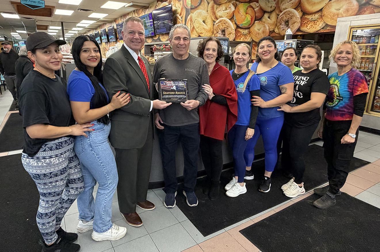 Senator Rhoads proudly presented the New York State Senate Empire Award to Seaford Bagels, recognizing the business as a cornerstone of the community. Known for its exceptional customer experience, Seaford Bagels has created a welcoming space where neighbors gather, connect, and enjoy a sense of community.