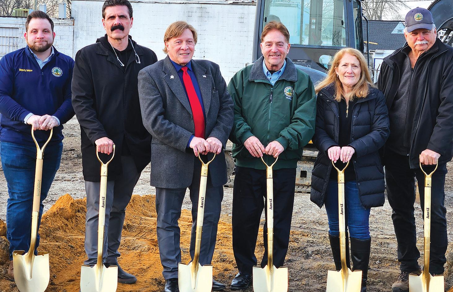 LINDENHURST BREAKS GROUND ON NEW DPW BUILDING - Pictured here (left to right) are: Deputy Mayor RJ Renna, Trustee Patrick Pichichero, Mayor Michael Lavorata, Trustee Douglas Madlon, Trustee Maryann Weckerle, and Superintendent of DPW Rick Sorrentino