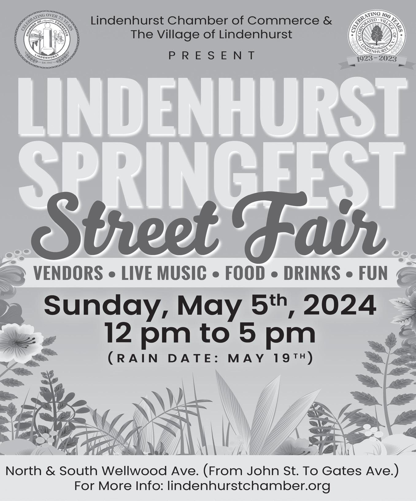 3 LINDENHURST NORTHSOUTH BAY’S NEIGHBOR NEWSPAPERS WEDNESDAY, MARCH 6, 2024 • WWW.LONGISLANDMEDIAGROUP.COM LINDENHURST CHAMBER OF COMMERCE 418106AN030624 www.lindenhurstchamber.org SAVE THE DATES EVENTS CALENDAR CHINESE AUCTION BANDS & BREWS WEDNESDAYS ON WELLWOOD WEDNESDAYS ON WELLWOOD WINTER ON WELLWOOD SPRING FEST 2024 APR 17 OCT 19 JUL 17 AUG 14 DEC 1 MAY 5 418344BN030624 LET US KEEP YOU WARM WITH OUR GREAT CUSTOMER SERVICE.YOU ARE OUR #1 PRIORITY! We Beat Any Price No One Gives A Better Price Forgetaboutit! RANDAZZO FUEL SUFFOLK & NASSAU (631) 587-8267 418022BN030624 H.E.A.P. ACCEPTED SE HABLA ESPANOL WE ACCEPT ALL CREDIT CARDS $11.00 OFF CANNOT BE COMBINED WITH COMPETITIVE PRICE EXPIRES 3/31/24 631-691-0172 ESTABLISHED 1908 Pre-need Information Available WESLEY A. POWELL WESLEY C. POWELL 67 BROADWAY AMITYVILLE Powell Funeral Home, Inc. 307592N030624