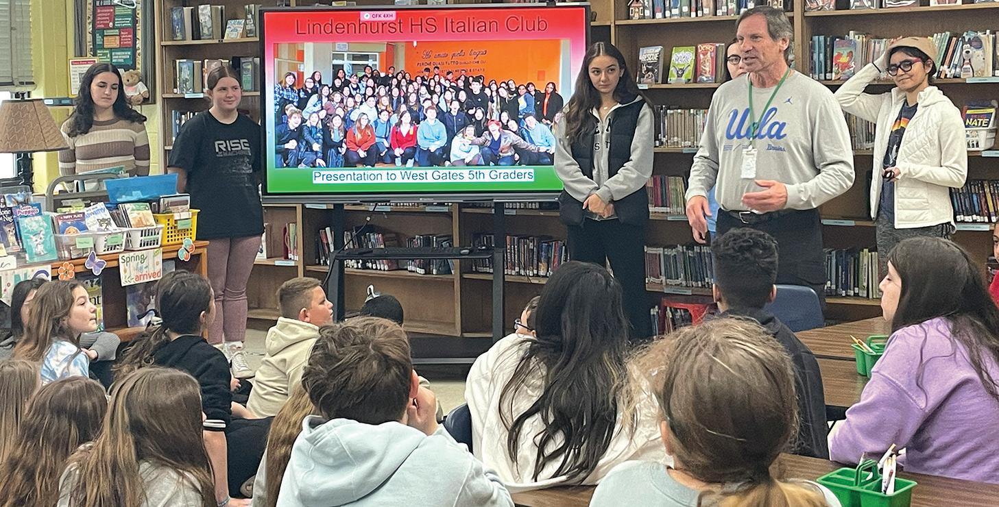 Members of the Lindenhurst High School Italian Club recently visited West Gates Elementary School to give a special presentation to fifth graders. The visiting high schoolers were seniors who had received a special opportunity through the club to visit Italy in 2023.