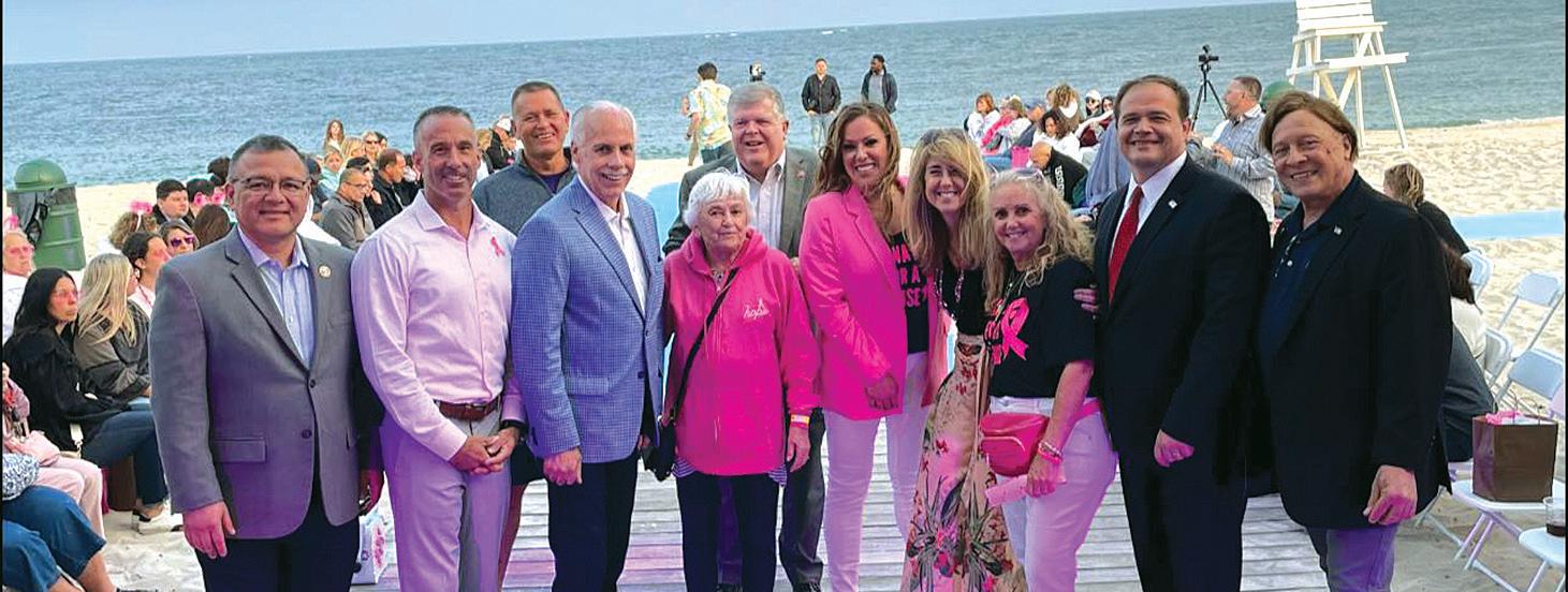 On Friday, June 9th, officials from the Village of Lindenhurst, Town of Babylon, and Suffolk County Legislature attended Ooh la la Boutique’s “Runway for a Cause” event which was held in the name of Brest Cancer awareness. Pictured from left to right are Babylon Deputy Supervisor Tony Martinez, Babylon Councilman Terrence McSweeney, Suffolk County Legislature Presiding Officer Kevin McCaffrey, Babylon Town Supervisor Rich Schaffer, members of the Babylon Breast Cancer Coalition and the Shannon Romanchuk Saturno Foundation, and Lindenhurst Mayor Mike Lavorata.