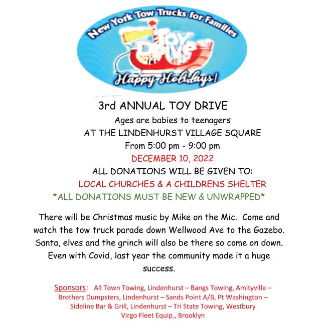 NOTICE IS HEREBY GIVEN that the Village of Lindenhurst will hold a Public Informational Meeting at the Rainbow Room, 293 Buffalo Avenue, Lindenhurst, New York on Thursday, December 1, 2022 at 7:00 pm, to present information and solicit community input concerning these proposals.