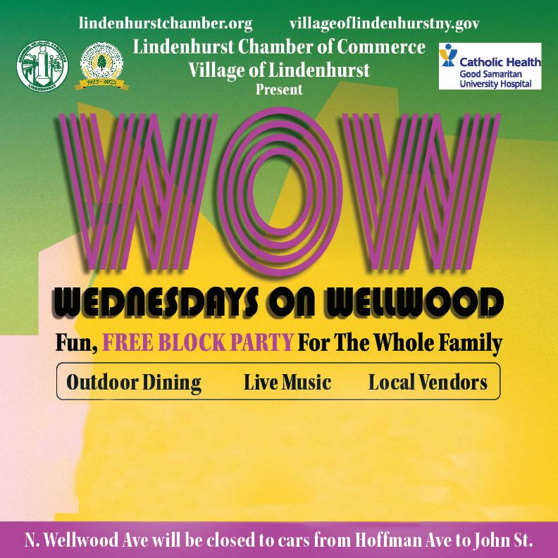 Babylon Town Supervisor Rich Schaeffer and Town of Babylon officials joined Lindenhurst Chamber Board Members to kick off the season's first WEDNESDAYS ON WELLWOOD block party on July 19th. The well-attended event featured music, vendors, food trucks, and a dedicated "kid zone" with pay-one-price inflatables. The Chamber thanks their event Silver Sponsor, Catholic Health Services for all their support. The next WEDNESDAYS ON WELLWOOD is August 19th.