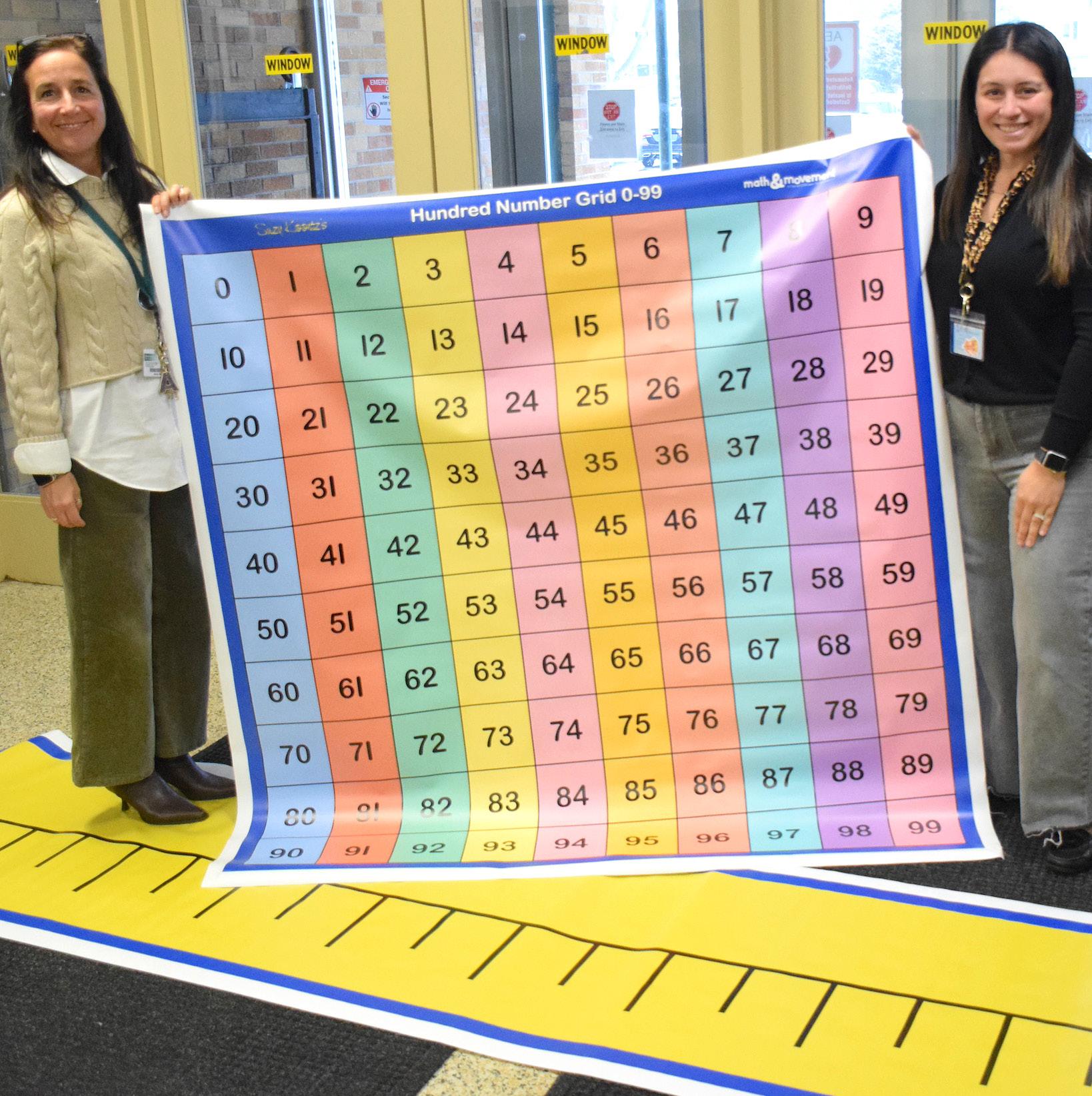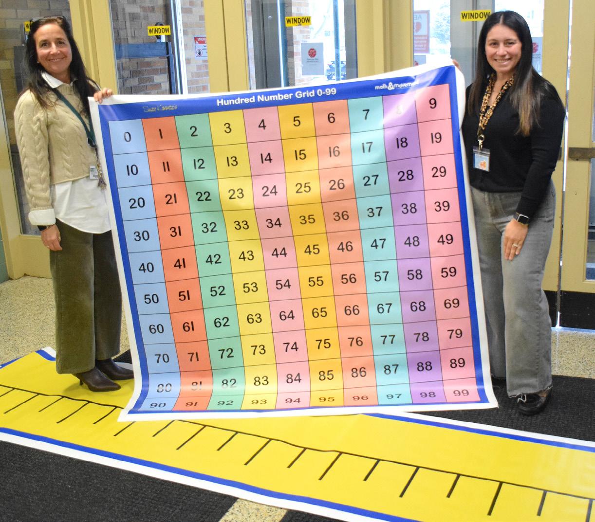 A pair of elementary math teachers in the Seaford School District are making learning more fun for students thanks to grants received from Jovia Federal Credit Union. Alexa Livingston and Amy McCoyd each received $500 through Jovia’s Funding Your Ideas Teacher Grant program, which were used for math mats. Photo courtesy of the Seaford School District