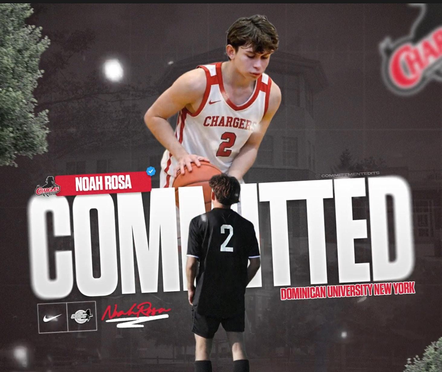 Noah Rosa of West Babylon High School, recently named one of Newsday’s Top 100 High School Soccer Players and an All-League, All-Academic basketball standout, signed his commitment letter to Dominican University. He earned both an academic and athletic Division II scholarship and will continue playing soccer and basketball while pursuing his education.