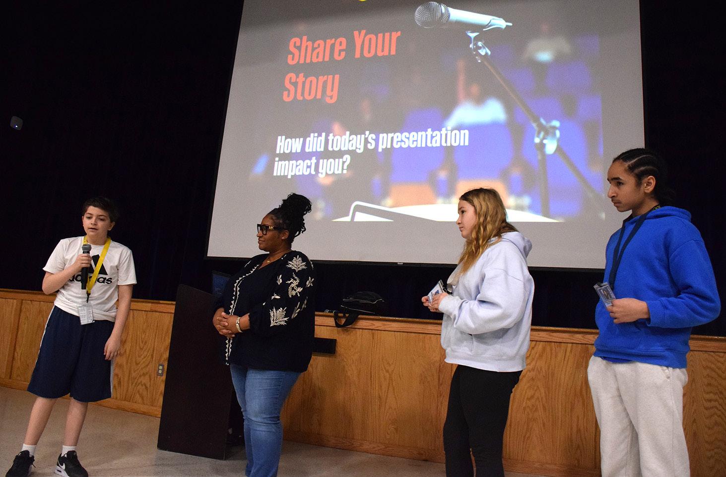 Presenter Keyona Williams led three grade-level presentations followed by a leadership workshop for student leaders.
