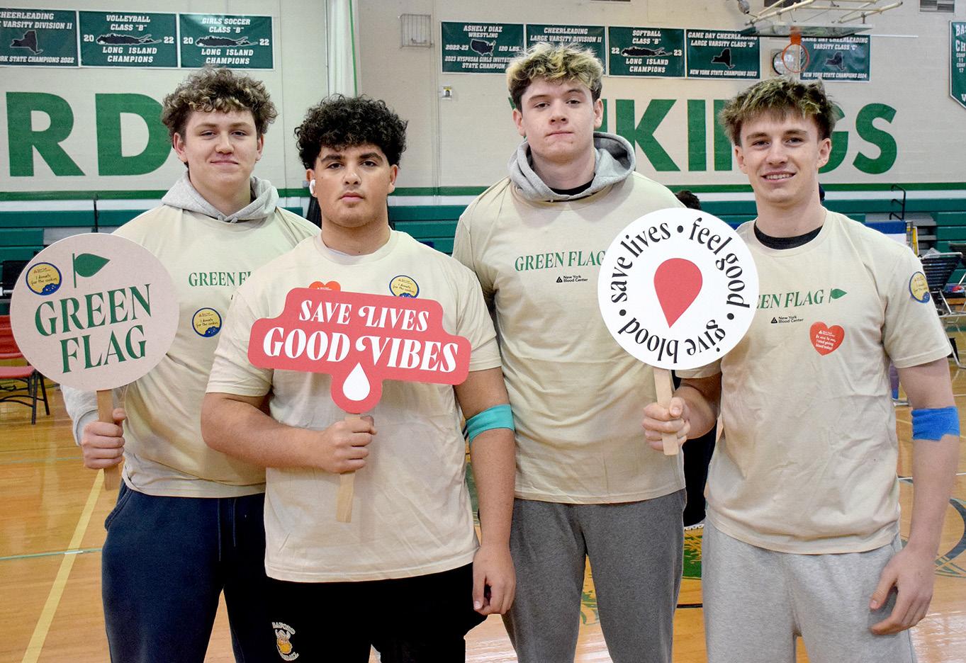 Seniors, from left, Michael Foote, Carmelo Riccobono, Jack DiPietro and Brian Falk were among more than 80 students who donated blood.