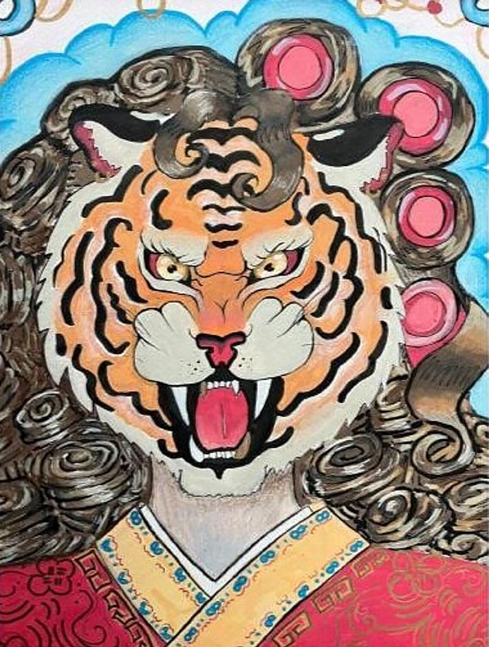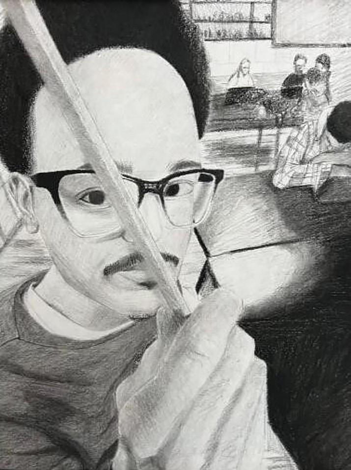 Students who exhibited their work in the High School All-County portion of the show include junior Justin Cruz (mixed media, “The Love of J + N”), senior Guadalupe Hernandez Granados (mixed media, “Eye of the Tiger”), and senior Nasir Grant (charcoal, “Focus”).
