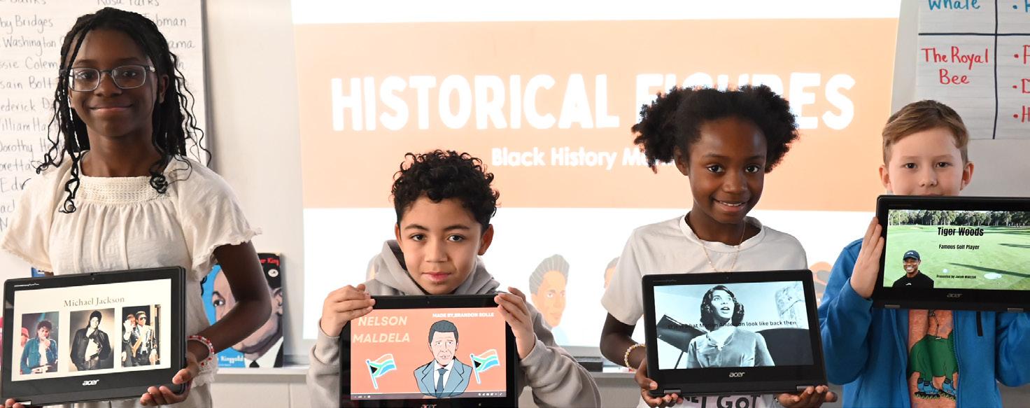 In recognition of Black History Month, fourth graders at Deauville Gardens East Elementary School in the Copiague School District conducted research on influential African American figures. After brainstorming a list of individuals, including athletes, musicians, pop stars, scientists and activists, students selected one person to focus their research on. Using both online resources and texts, students chose to